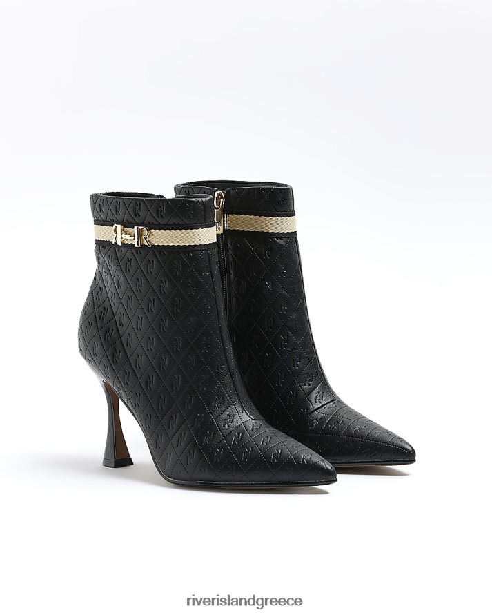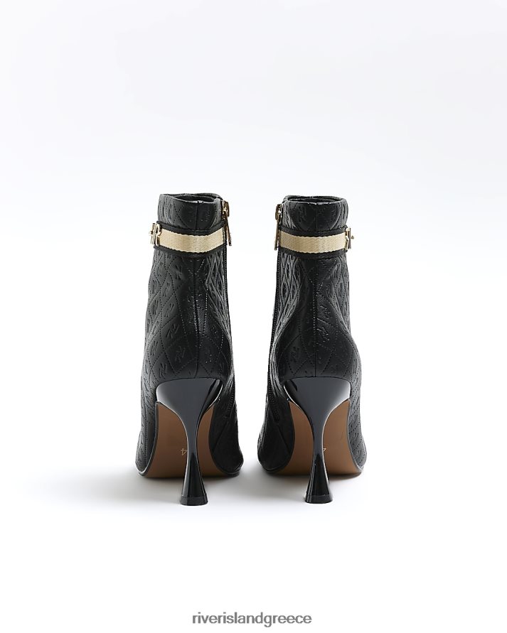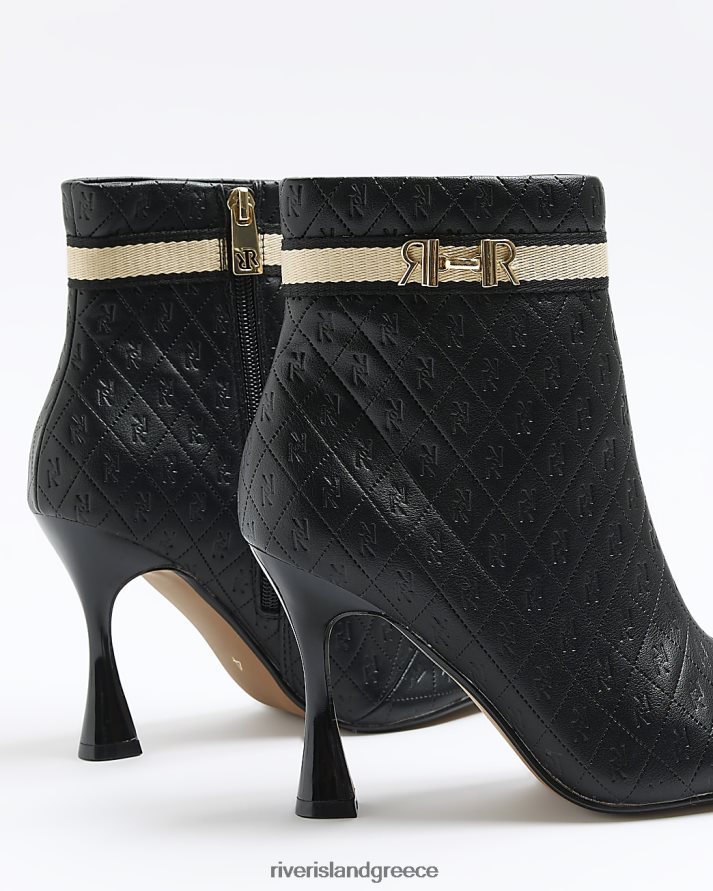 River Island είδη υπόδησης μαύρος γυναίκες φαρδιά μποτάκια μονόγραμμα με τακούνι B6N8X777