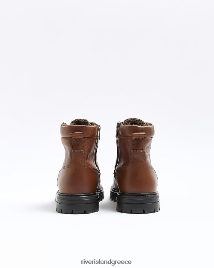River Island είδη υπόδησης καφέ άνδρες δερμάτινες μπότες με γιακά B6N8X2718