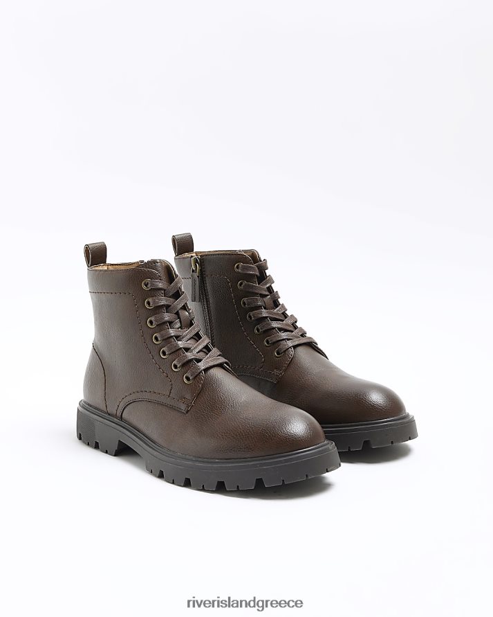 River Island είδη υπόδησης καφέ άνδρες μπότες μάχης από ψεύτικο δέρμα B6N8X2752