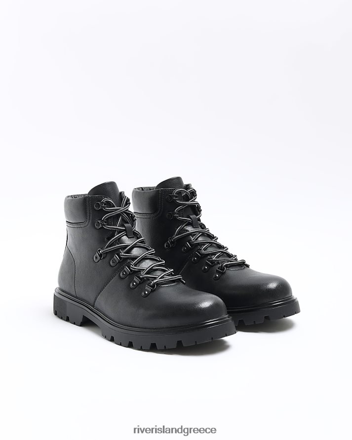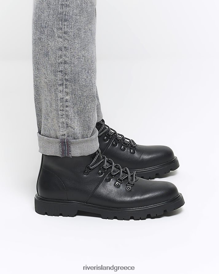 River Island είδη υπόδησης μαύρος άνδρες γυαλισμένες μπότες πεζοπορίας B6N8X2785