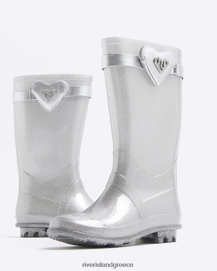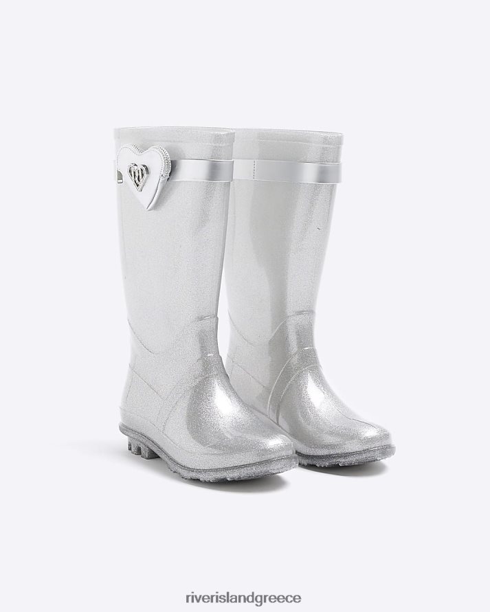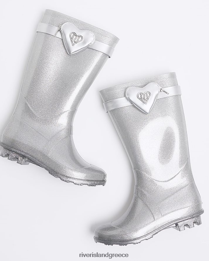 River Island είδη υπόδησης ασήμι κορίτσια g μπότες γαλότσες με τσέπη καρδιά B6N8X6057