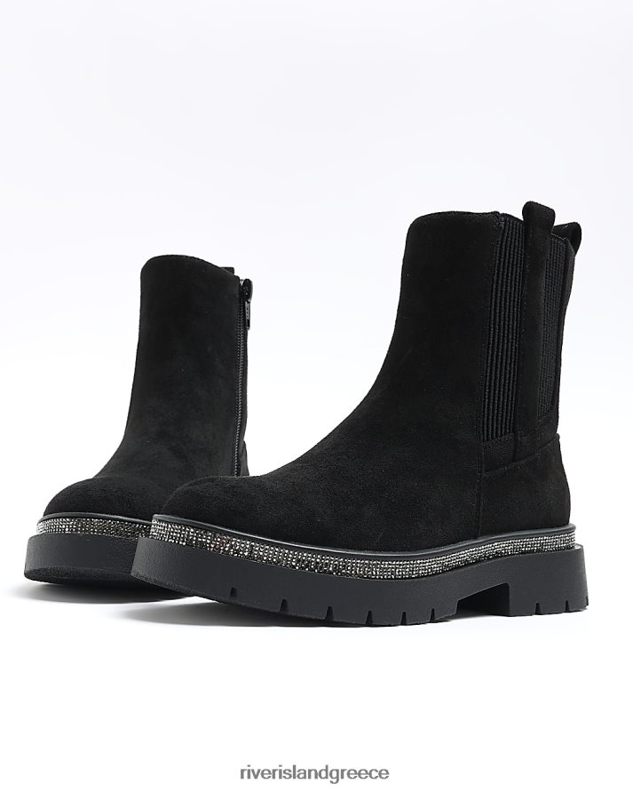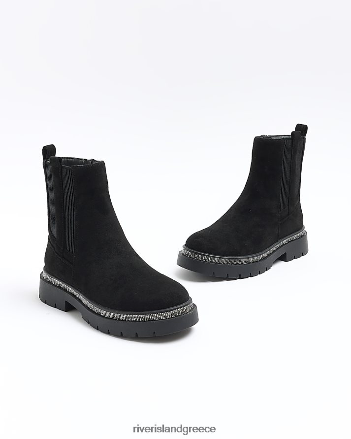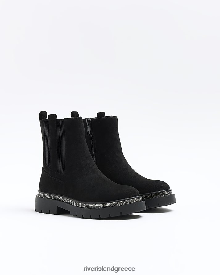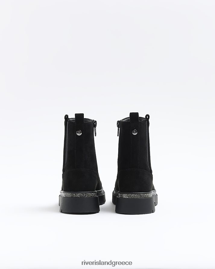 River Island είδη υπόδησης μαύρος κορίτσια g μπότες από σουέντ διαμάντε B6N8X3176