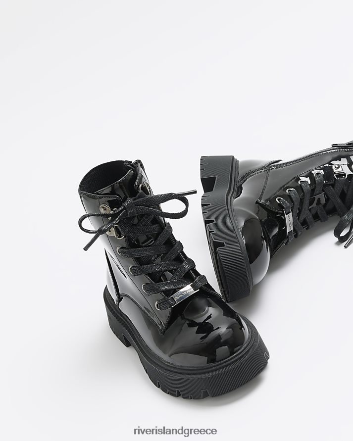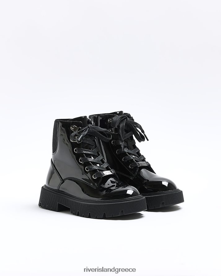 River Island είδη υπόδησης μαύρος κορίτσια g patent hiker χοντροκομμένες μπότες B6N8X5997