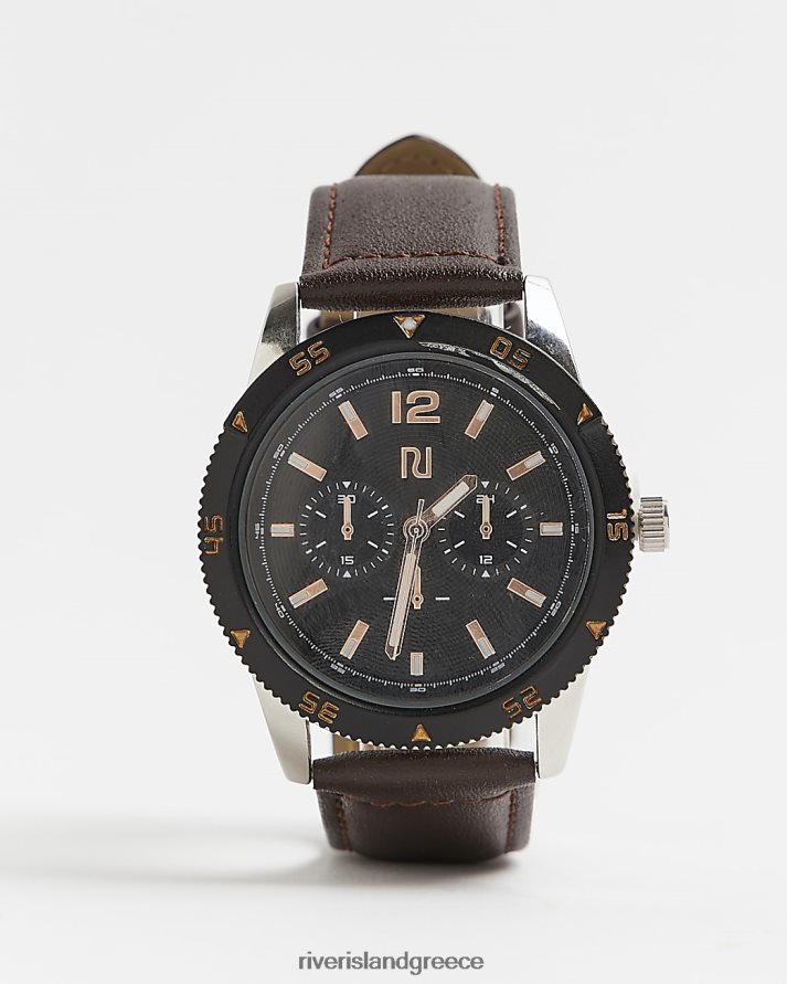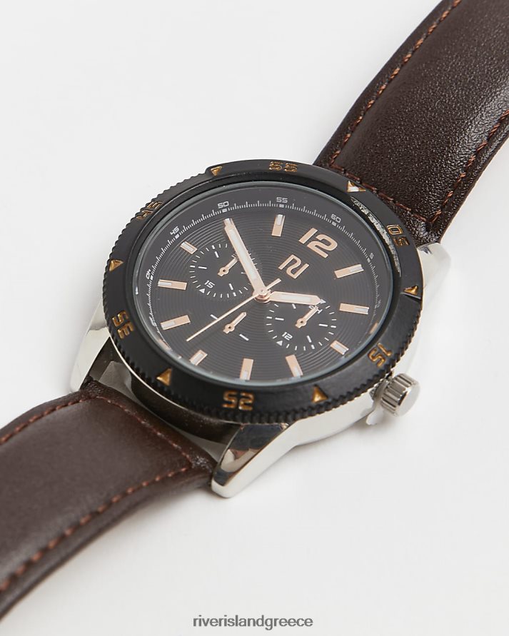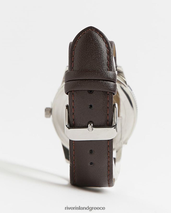River Island αξεσουάρ καφέ άνδρες Ρολόι με δερμάτινο λουράκι με κουτί δώρου B6N8X5744