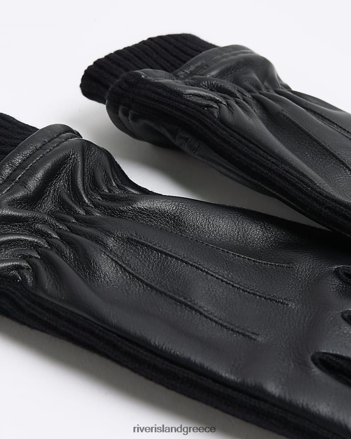 River Island αξεσουάρ μαύρος άνδρες δερμάτινα γάντια B6N8X2839