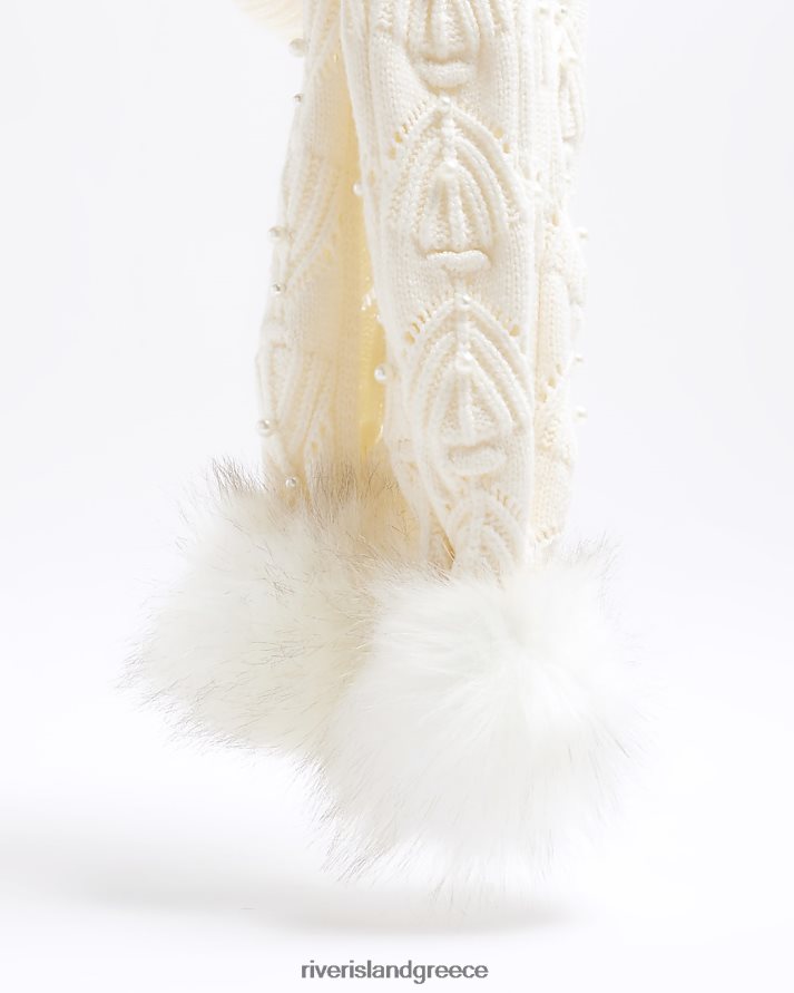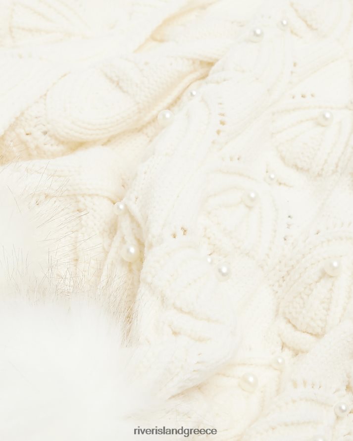 River Island αξεσουάρ κρέμα κορίτσια g περλέ λεπτομέρεια μαντήλι πομ πομ B6N8X6395