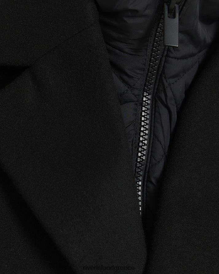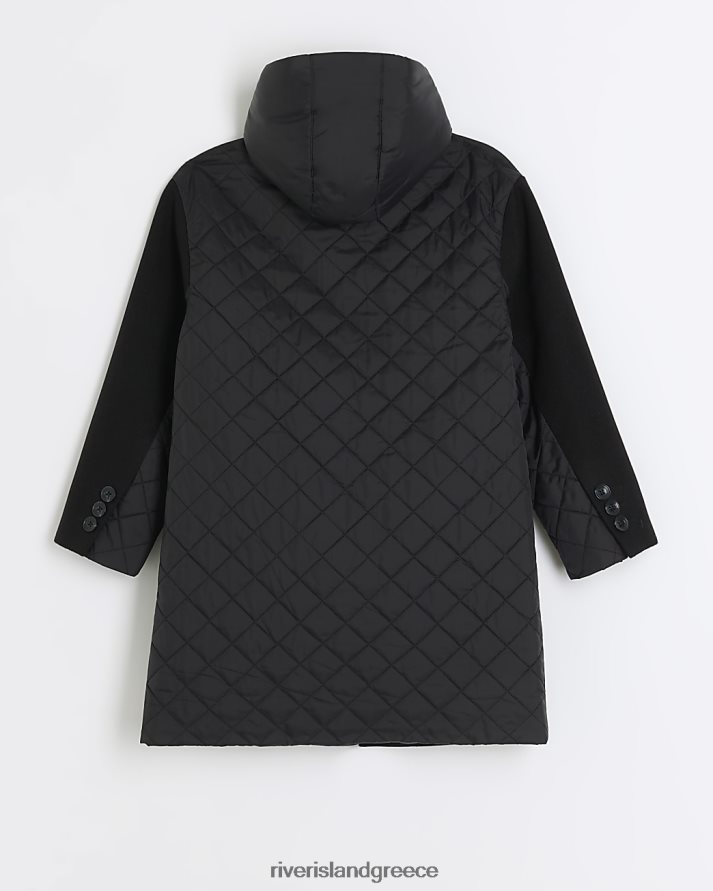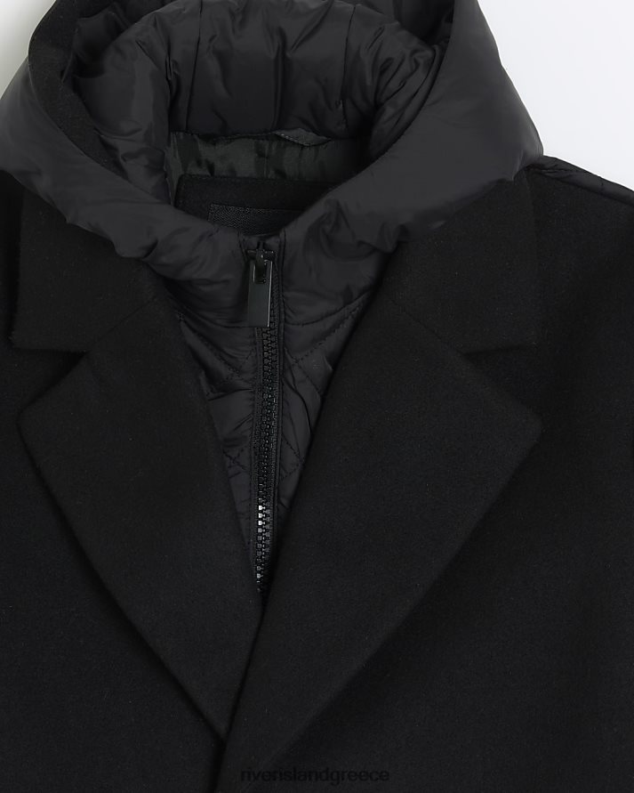River Island ενδύματα μαύρος αγόρια β υβριδικό μάλλινο παλτό με κουκούλα B6N8X6839
