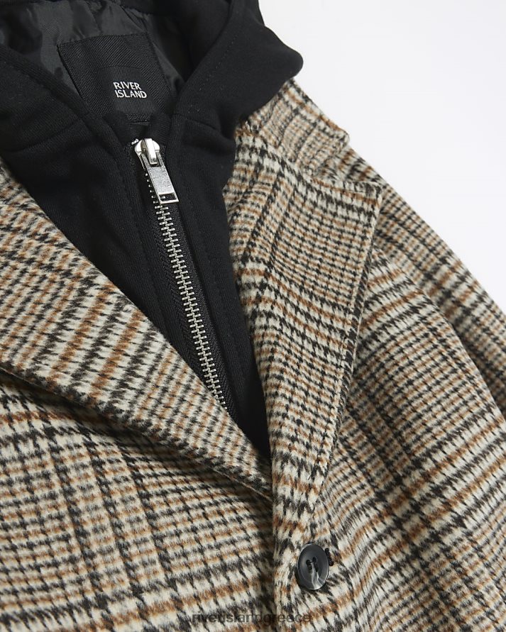 River Island ενδύματα μπεζ αγόρια β ελέγξτε υβριδικό παλτό με κουκούλα B6N8X6876