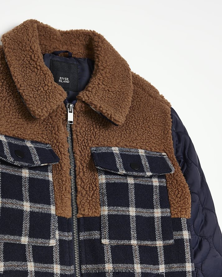 River Island ενδύματα ΠΟΛΕΜΙΚΟ ΝΑΥΤΙΚΟ αγόρια β check borg καπιτονέ σάκο B6N8X6918