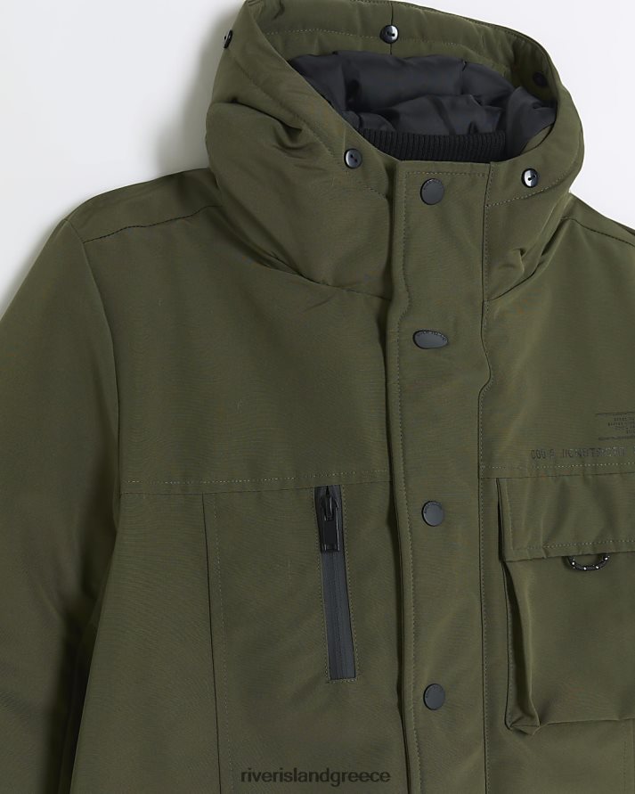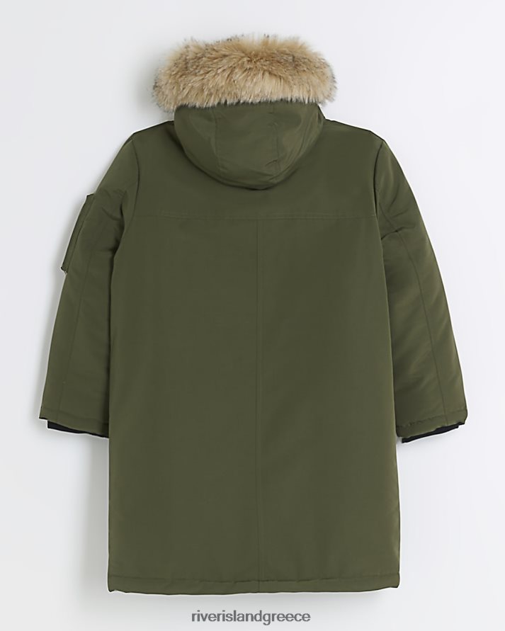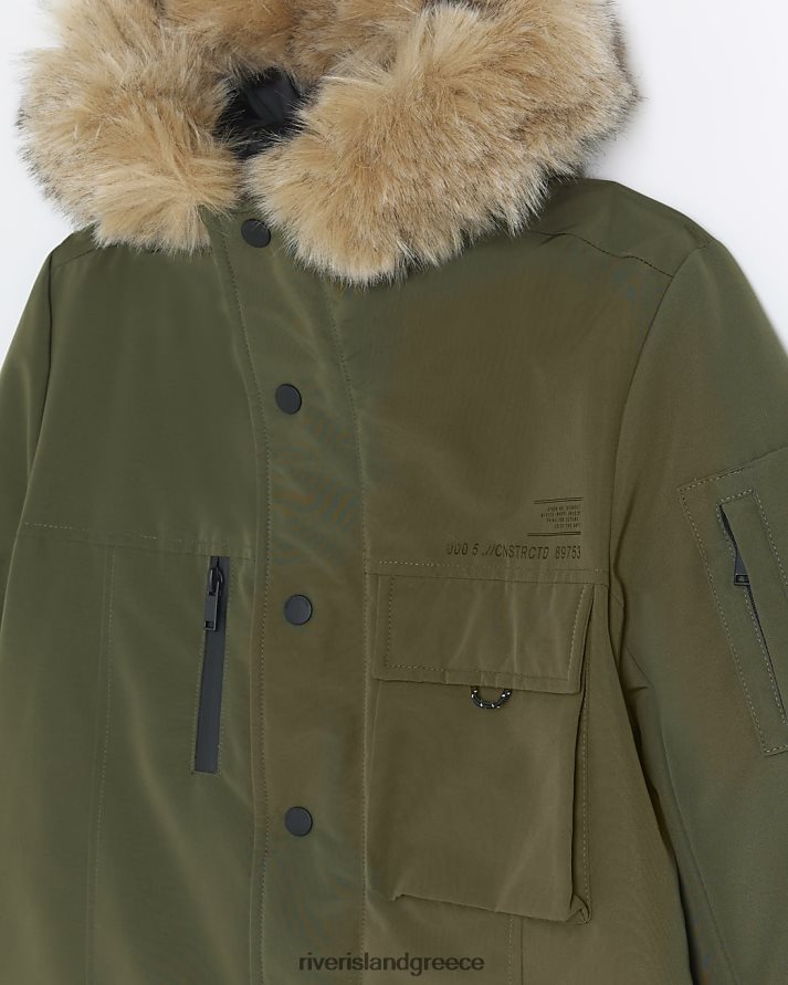 River Island ενδύματα χακί αγόρια β παλτό παρκά με κουκούλα από συνθετική γούνα B6N8X3632
