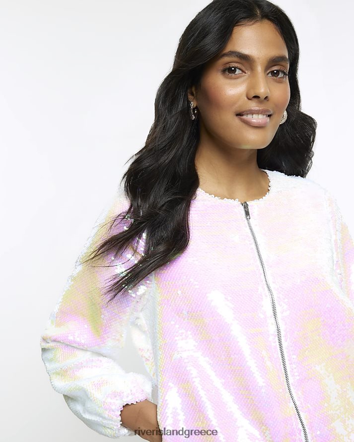 River Island ενδύματα άσπρο γυναίκες ιριδίζουσα παγιέτα bomber jacket B6N8X1106