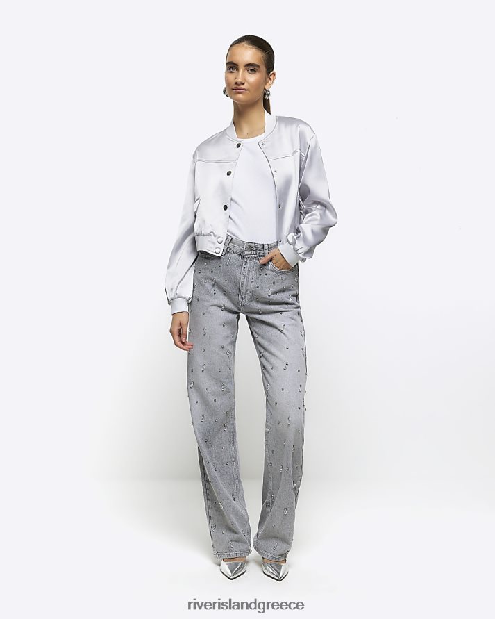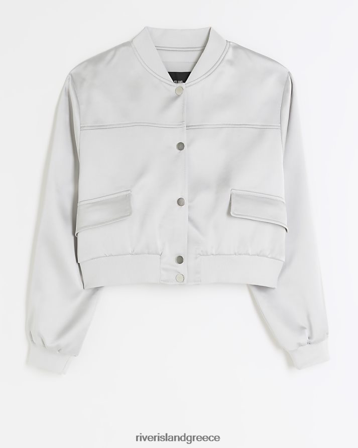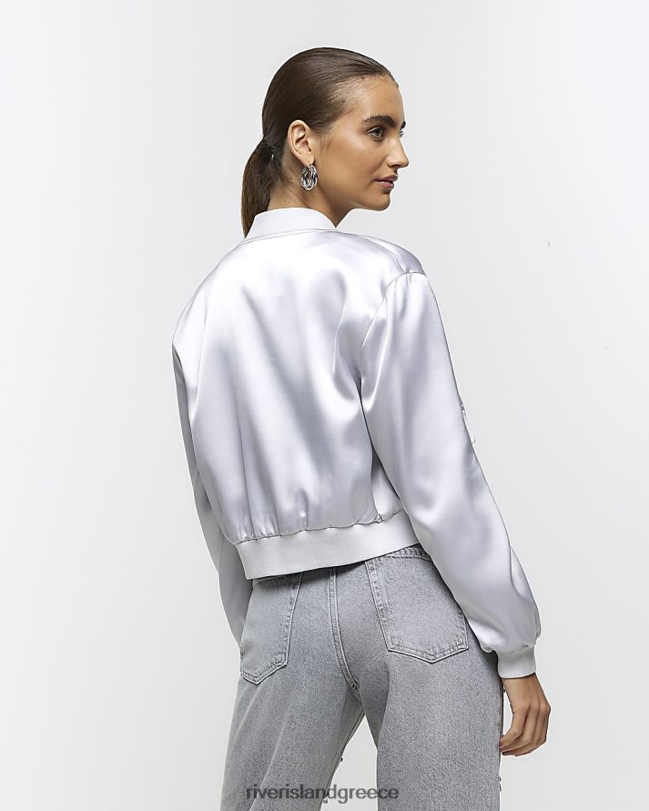 River Island ενδύματα ασήμι γυναίκες σατέν ραμμένο bomber jacket B6N8X4026