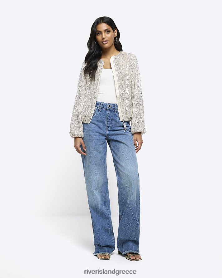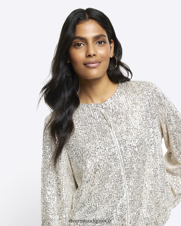 River Island ενδύματα ασήμι γυναίκες bomber τζάκετ με παγιέτες B6N8X1105