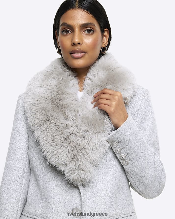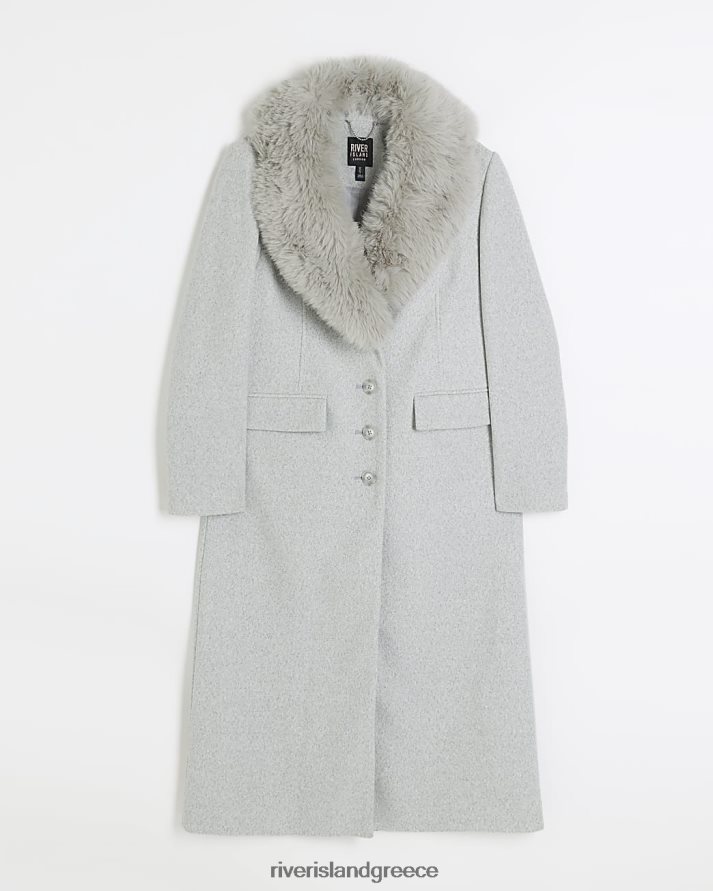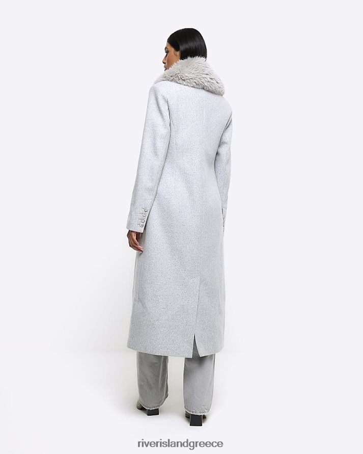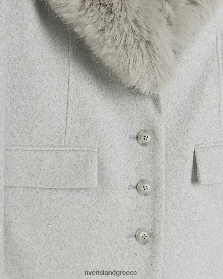 River Island ενδύματα γκρί γυναίκες παλτό παραγάδι με γιακά από ψεύτικη γούνα B6N8X56