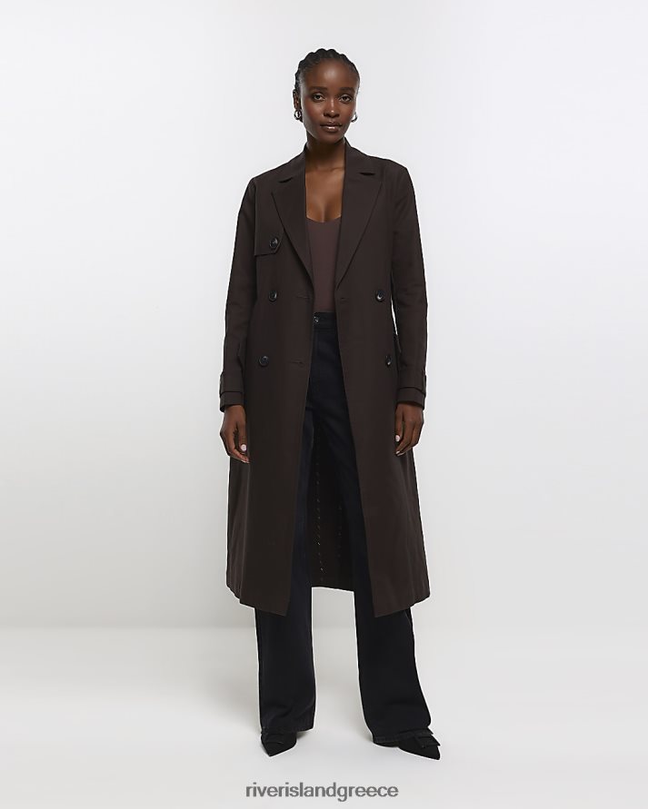 River Island ενδύματα καφέ γυναίκες καμπαρντίνα με παραγάδι με ζώνη B6N8X1186