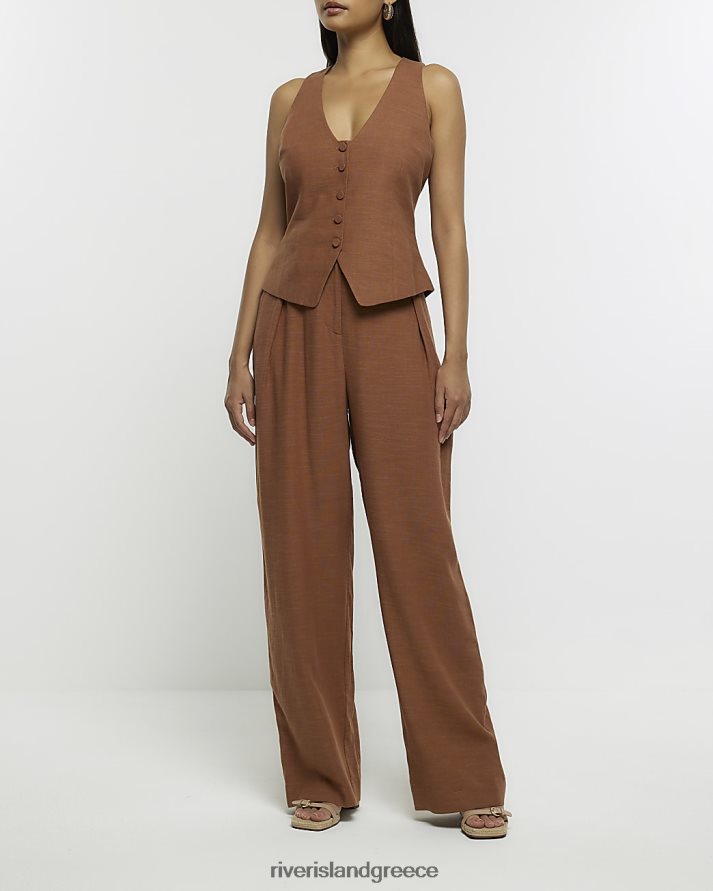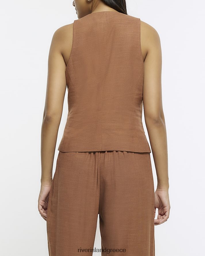 River Island ενδύματα καφέ γυναίκες κουμπωτό γιλέκο με λινό μείγμα B6N8X4550