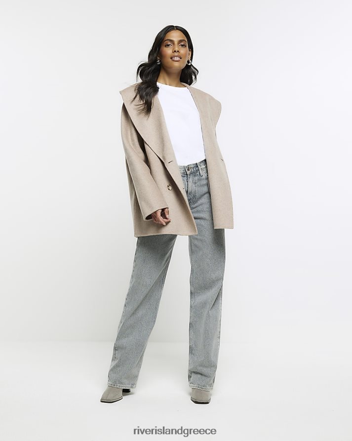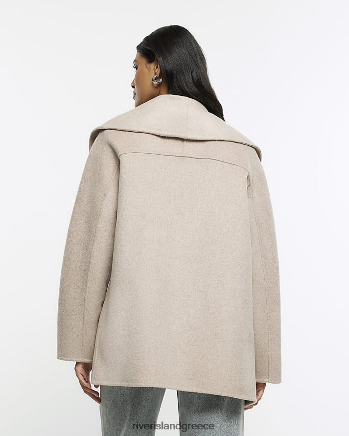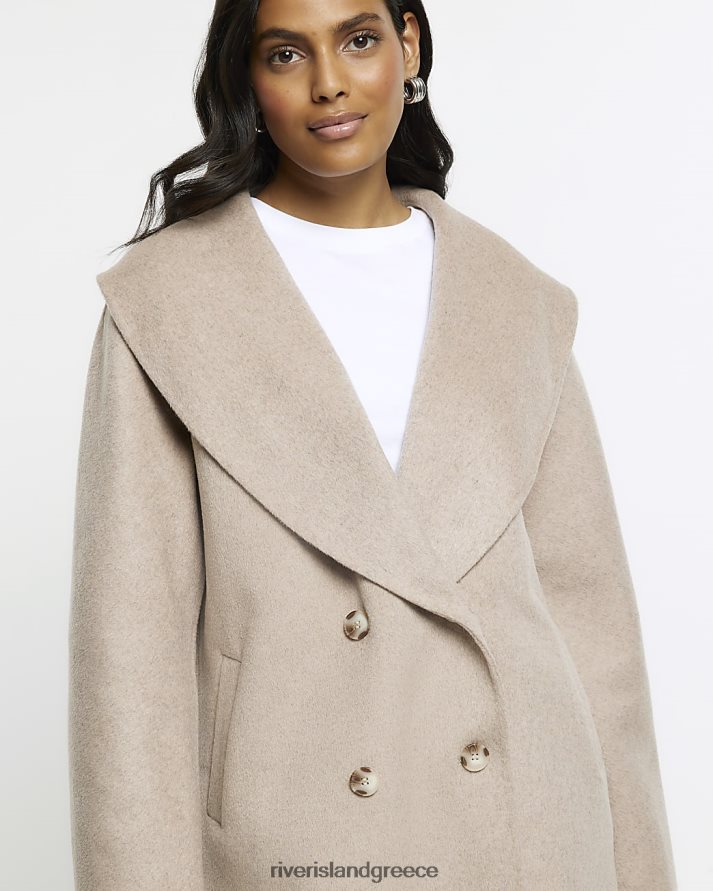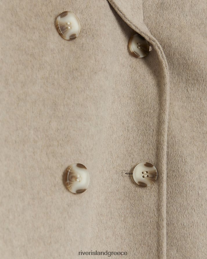 River Island ενδύματα καφέ γυναίκες παλτό μαλλί με διπλό στήθος B6N8X4231
