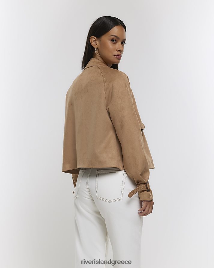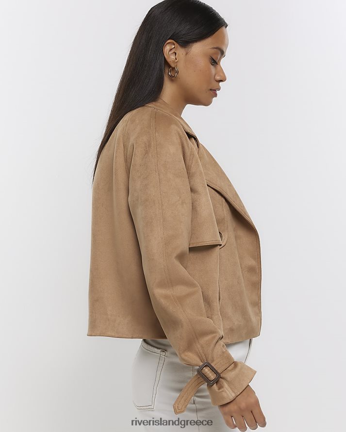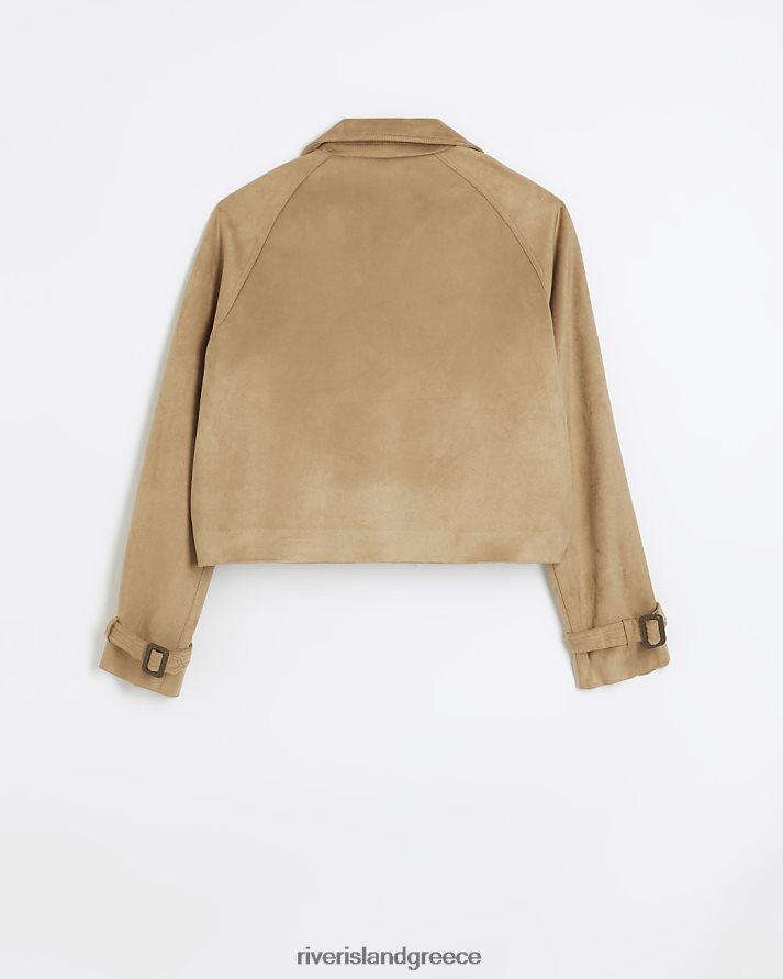 River Island ενδύματα καφέ γυναίκες ψεύτικο καστόρι crop trench jacket B6N8X1300