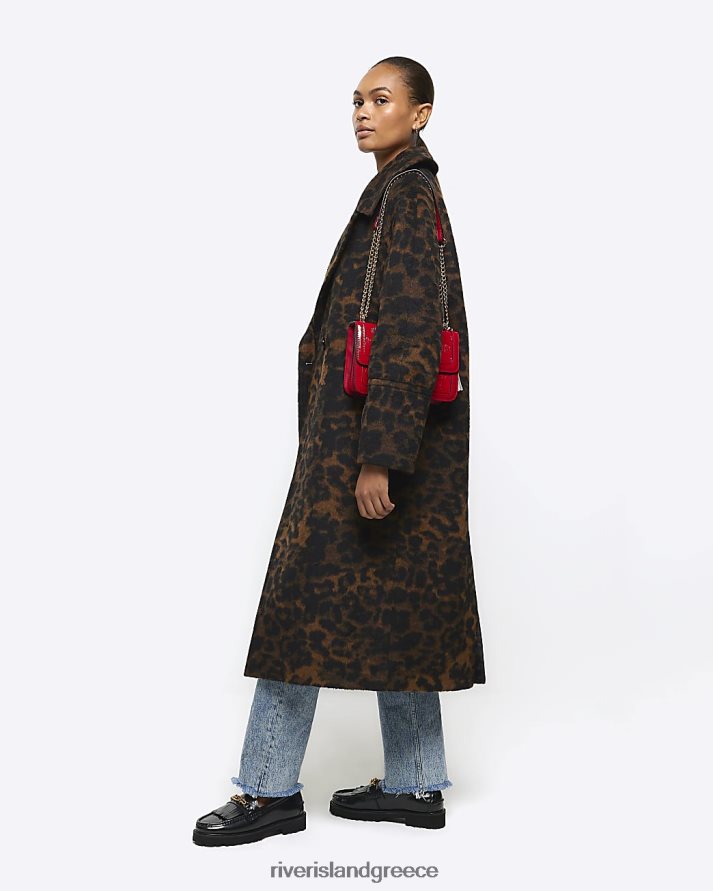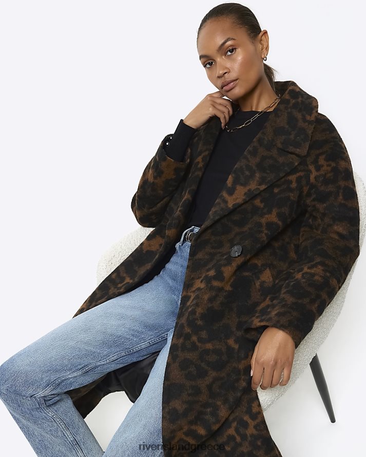 River Island ενδύματα καφέ γυναίκες animal print υπερμεγέθη παλτό B6N8X3852