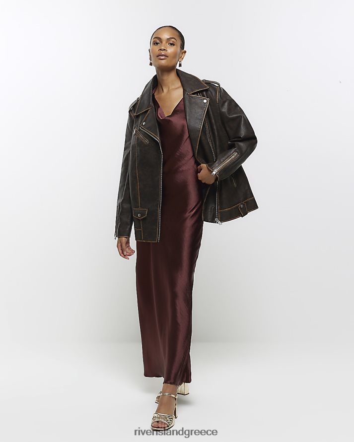 River Island ενδύματα καφέ γυναίκες Biker jacket oversized από ψεύτικο δέρμα B6N8X63