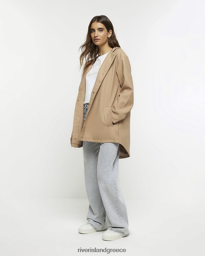 River Island ενδύματα καφέ γυναίκες mac βροχής με κουκούλα B6N8X723