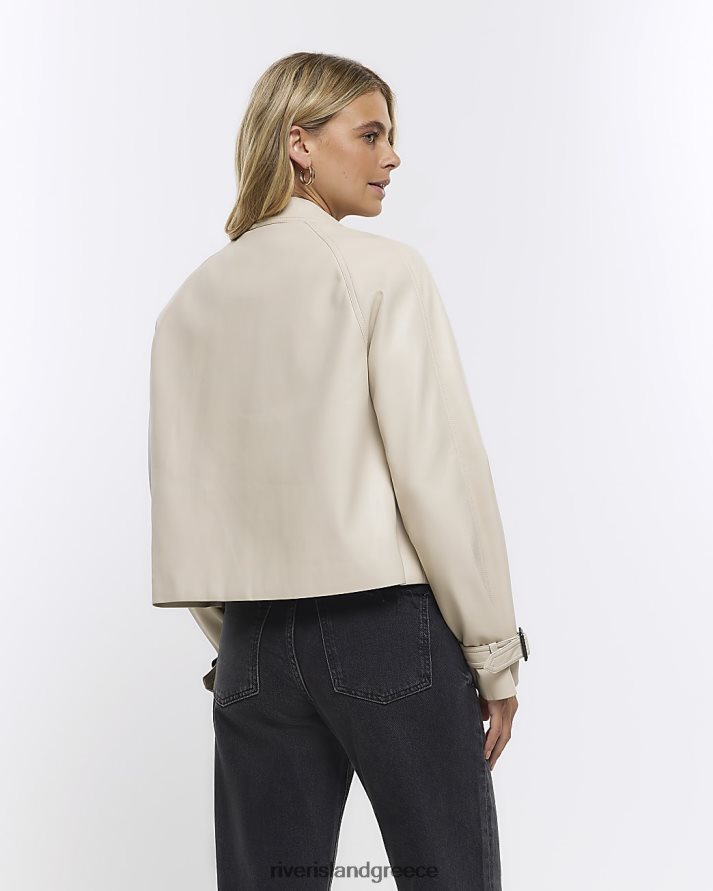 River Island ενδύματα κρέμα γυναίκες καμπαρντίνα από ψεύτικο δέρμα crop B6N8X1301