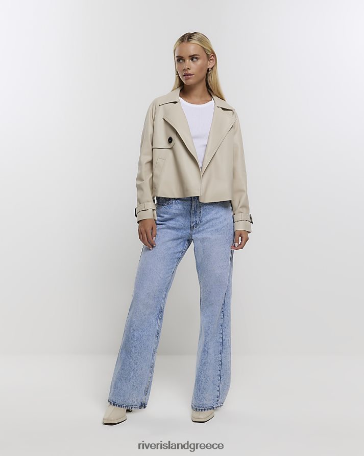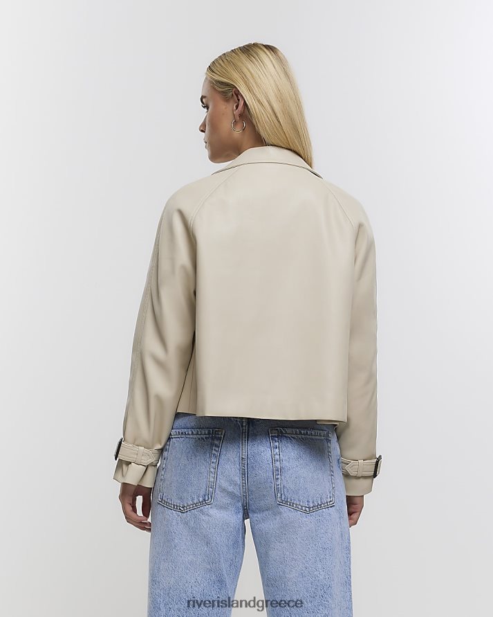 River Island ενδύματα κρέμα γυναίκες καμπαρντίνα petite faux leather crop B6N8X5266