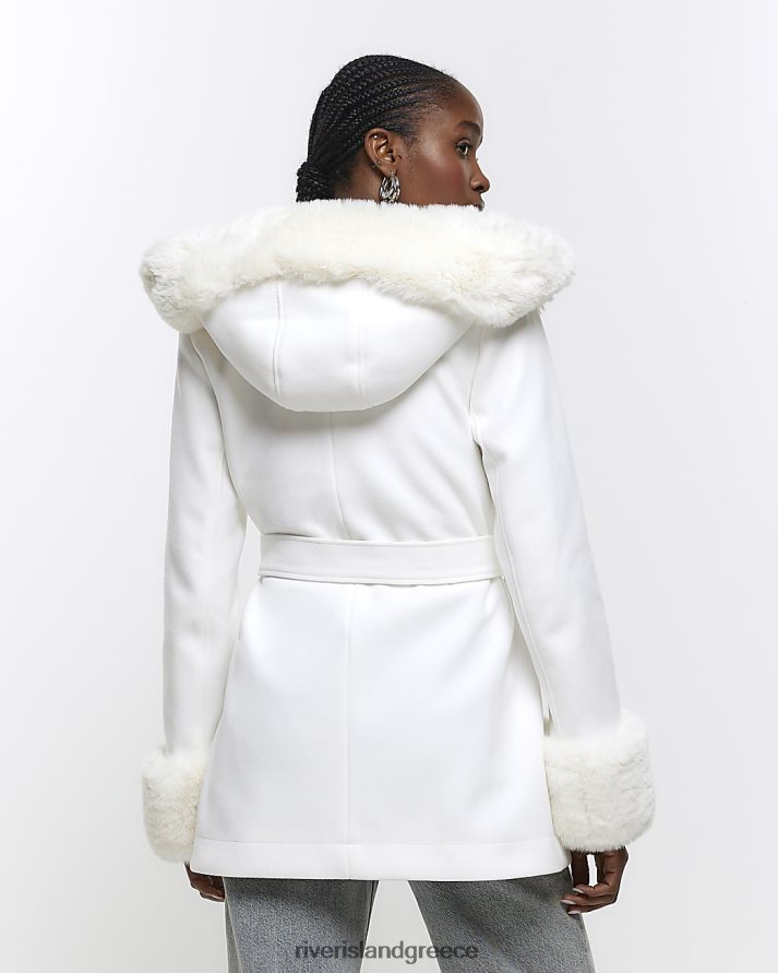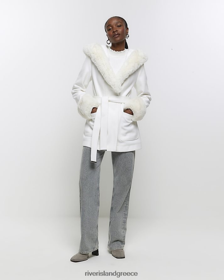 River Island ενδύματα κρέμα γυναίκες παλτό με ζώνη από ψεύτικη γούνα B6N8X693