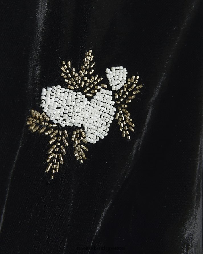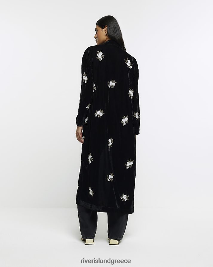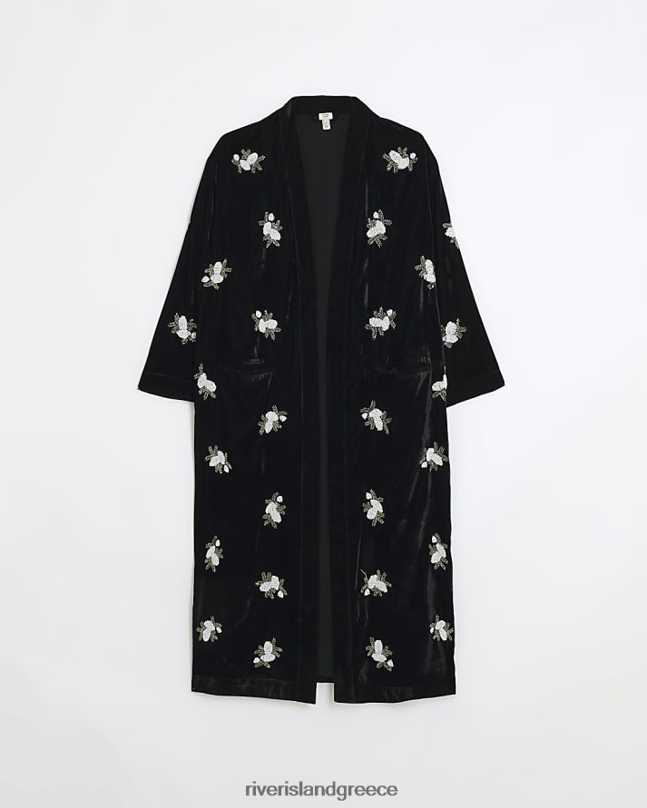 River Island ενδύματα μαύρος γυναίκες βελούδινο διακοσμημένο κιμονό B6N8X3888