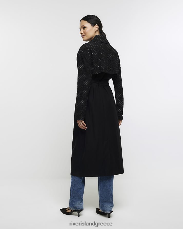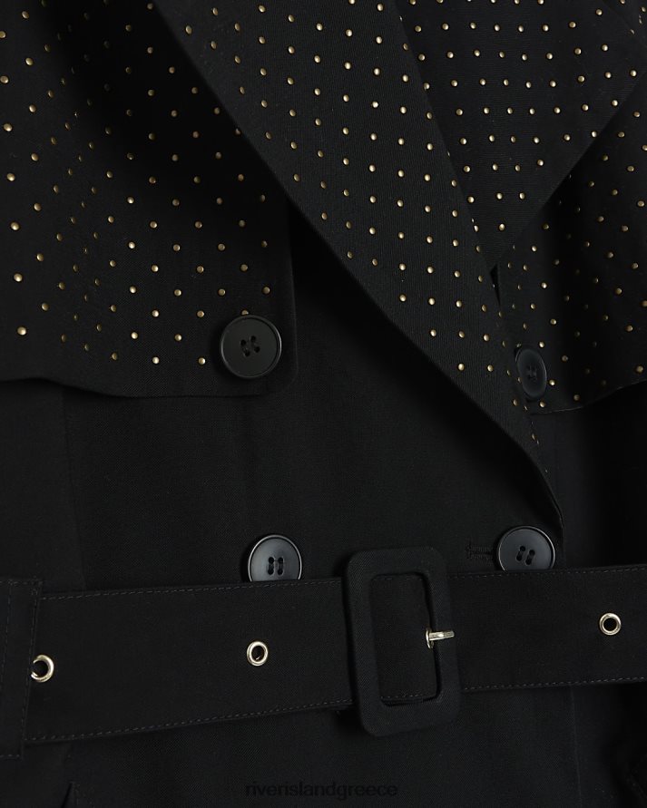 River Island ενδύματα μαύρος γυναίκες καμπαρντίνα με παραγάδι με καρφιά B6N8X4307