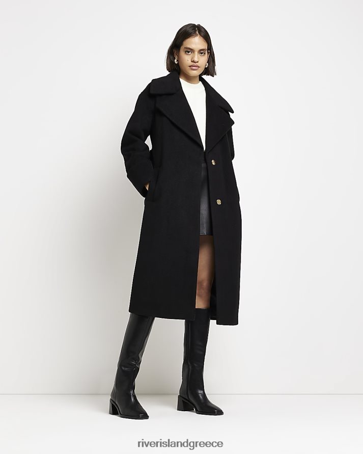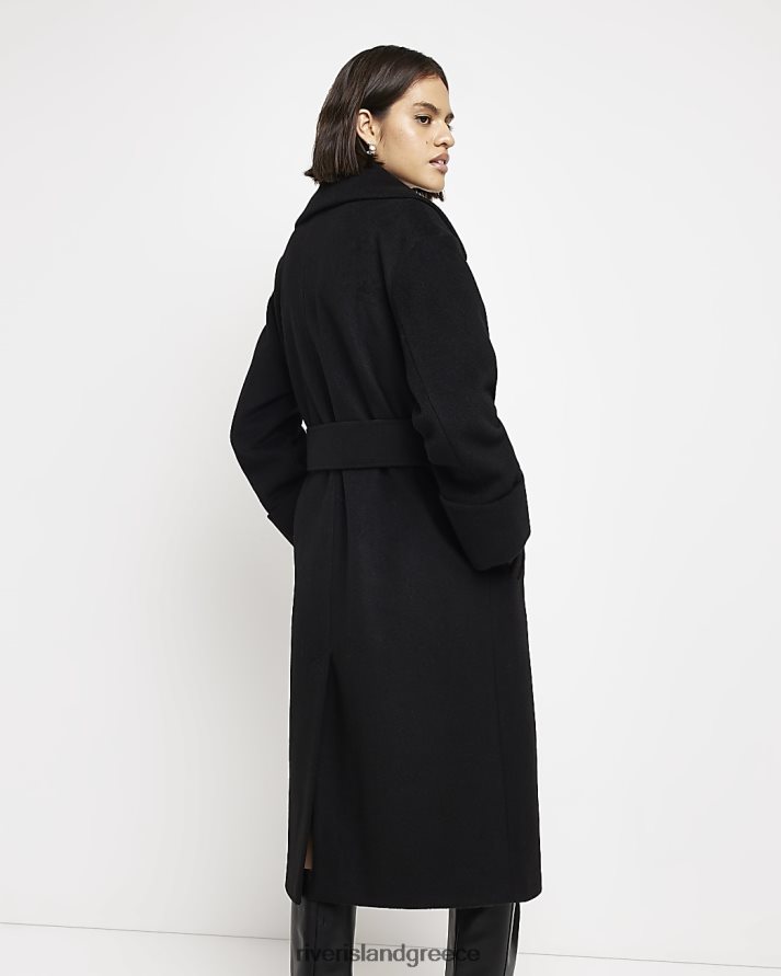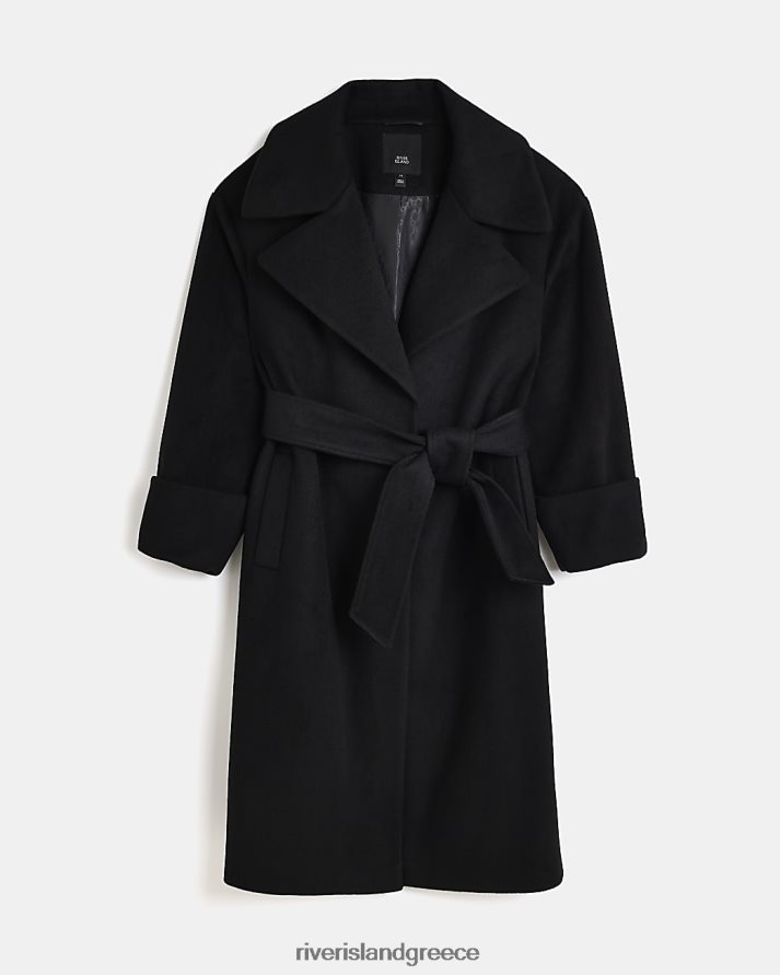 River Island ενδύματα μαύρος γυναίκες μάλλινο παλτό με ζώνη B6N8X4311