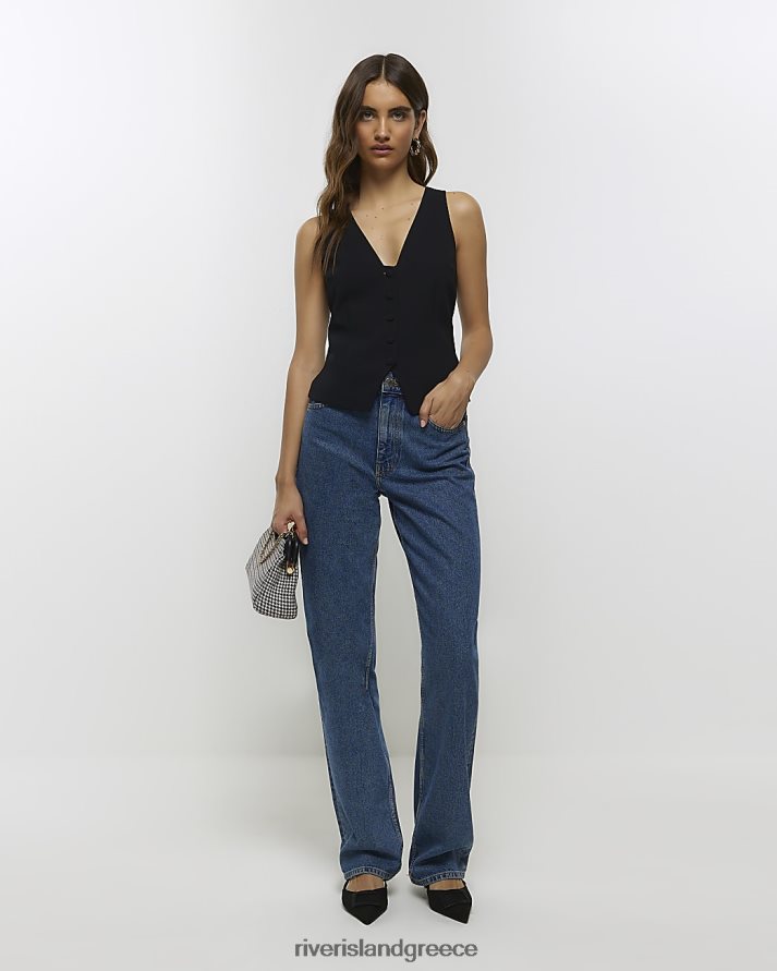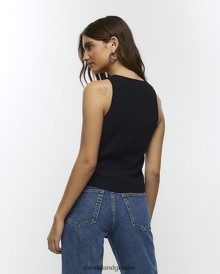 River Island ενδύματα μαύρος γυναίκες μπροστινό γιλέκο με κουμπί B6N8X3851