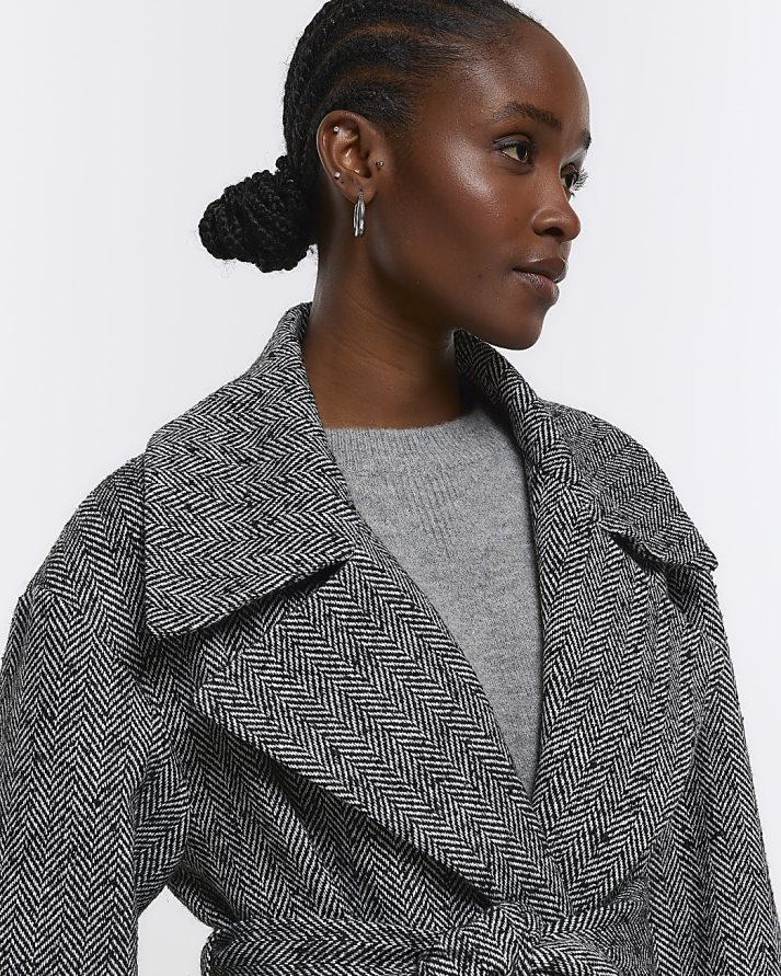 River Island ενδύματα μαύρος γυναίκες παλτό με παραγάδι ψαροκόκαλο B6N8X3744