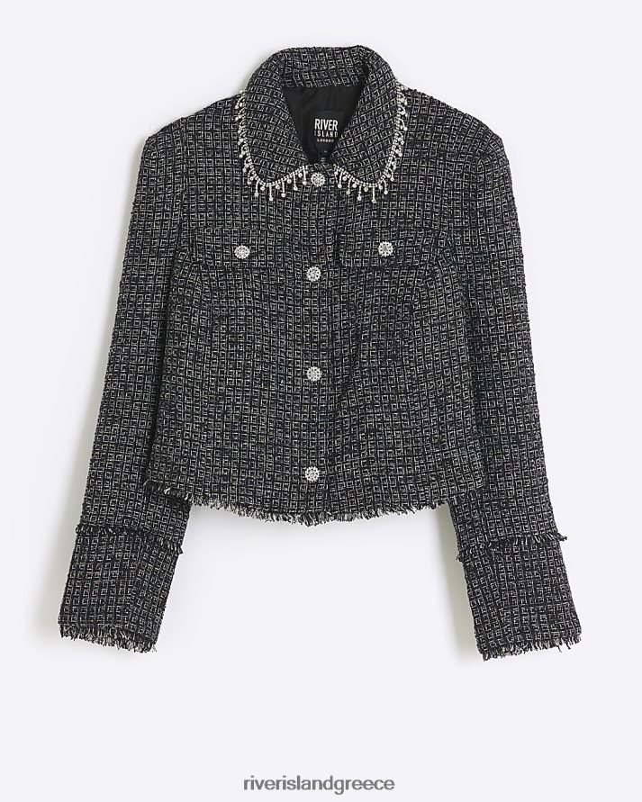 River Island ενδύματα μαύρος γυναίκες σακάκι γιακά boucle diamante B6N8X3724