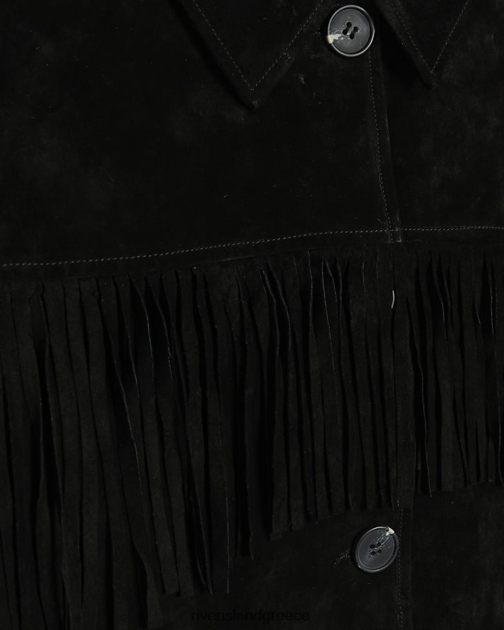 River Island ενδύματα μαύρος γυναίκες σουέτ σακάκι με κρόσσια B6N8X4315