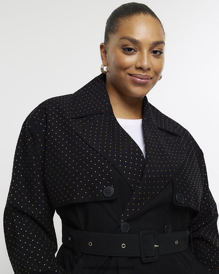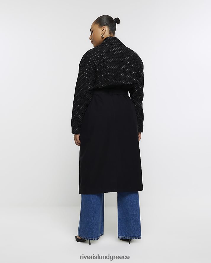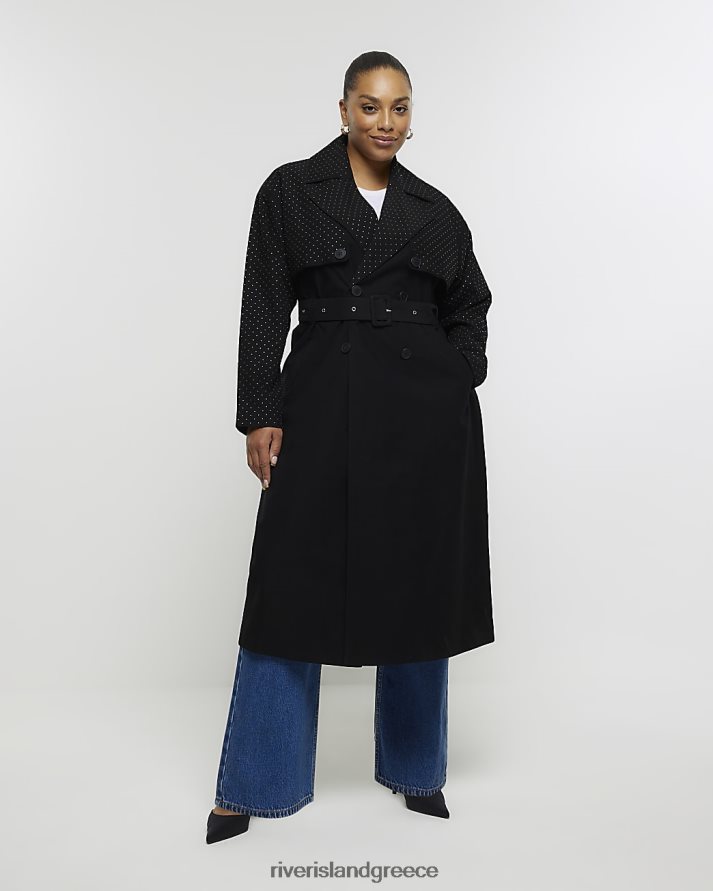 River Island ενδύματα μαύρος γυναίκες συν καμπαρντίνα με παραγάδι με καρφιά B6N8X5070