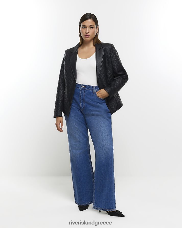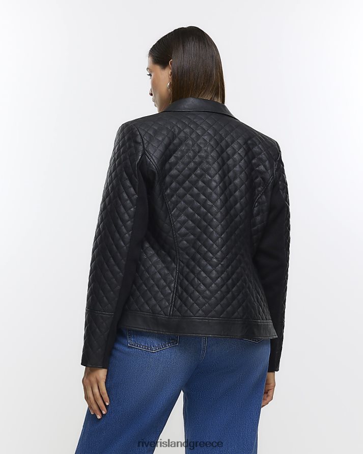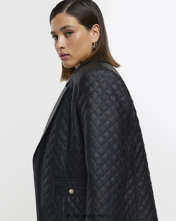 River Island ενδύματα μαύρος γυναίκες συν καπιτονέ blazer από ψεύτικο δέρμα B6N8X5120