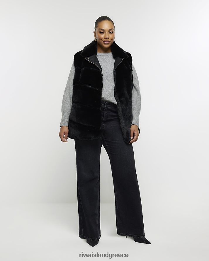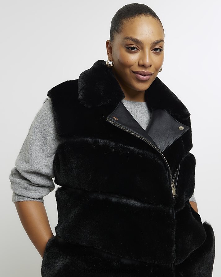 River Island ενδύματα μαύρος γυναίκες συν ψεύτικη γούνα γιλέκο B6N8X5094