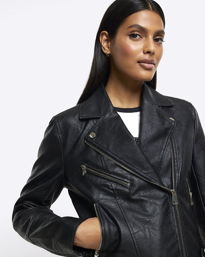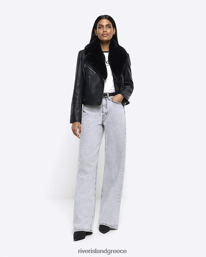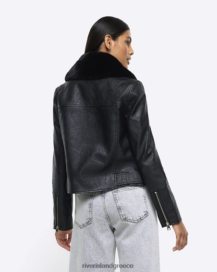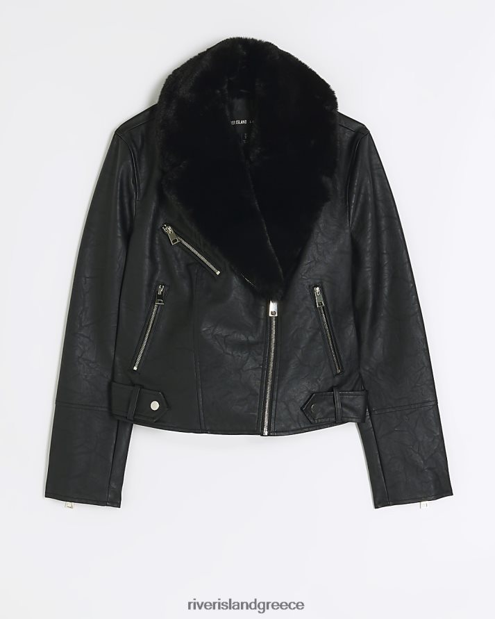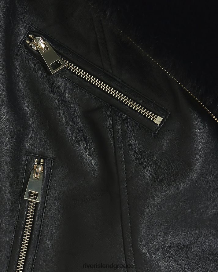 River Island ενδύματα μαύρος γυναίκες Biker jacket με γιακά από ψεύτικη γούνα B6N8X4018