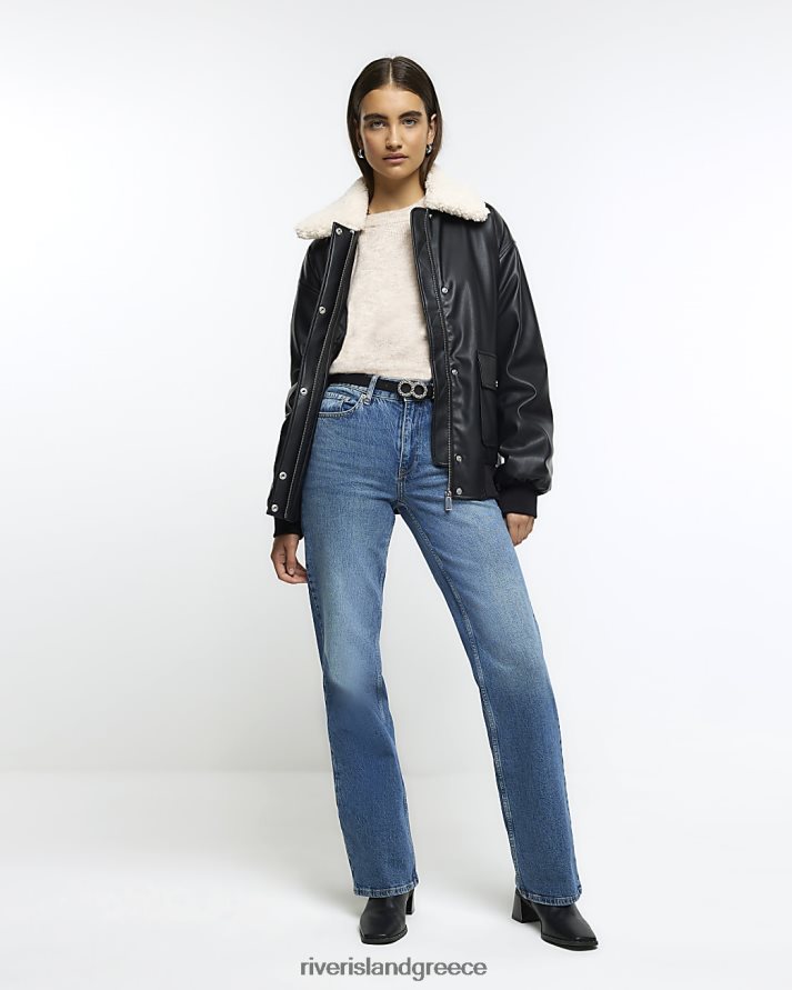 River Island ενδύματα μαύρος γυναίκες shearling bomber jacket B6N8X3830