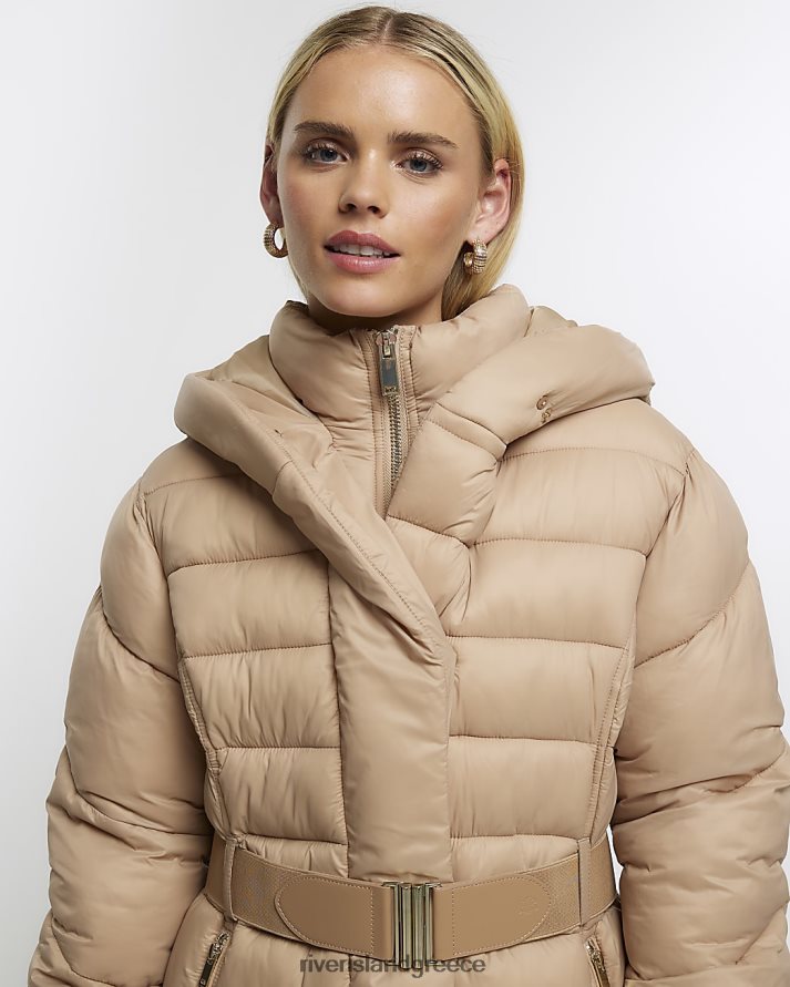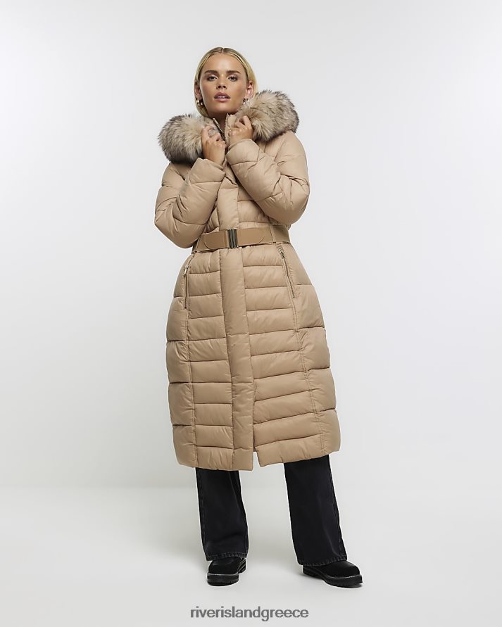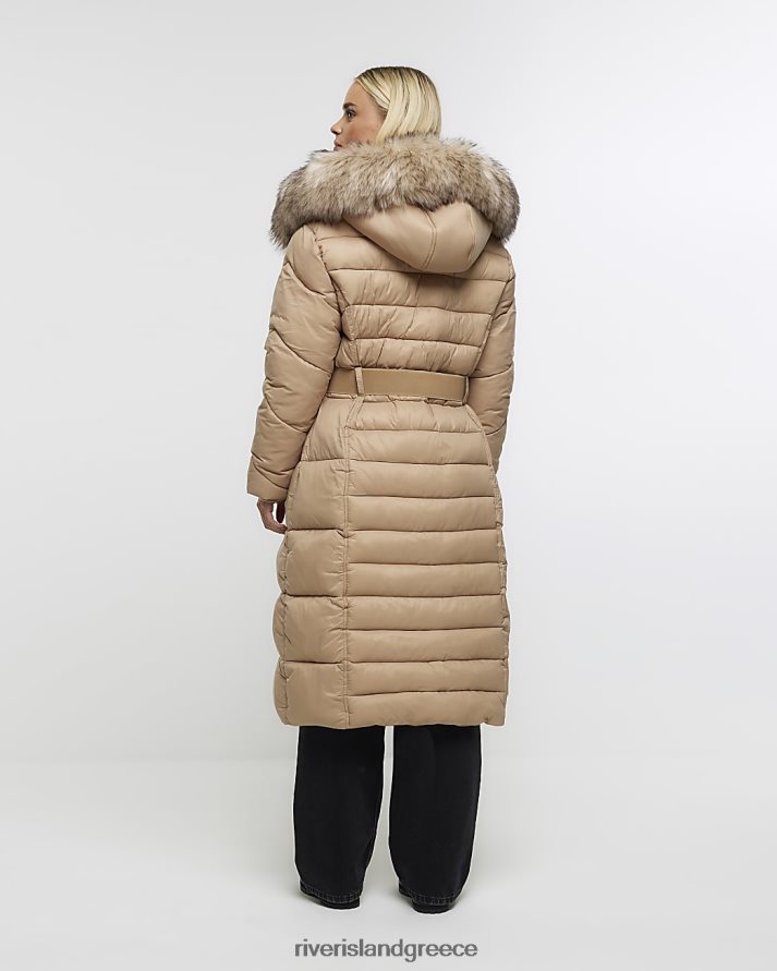 River Island ενδύματα μπεζ γυναίκες παλτό με παραγάδι με ψεύτικη γούνα B6N8X5249