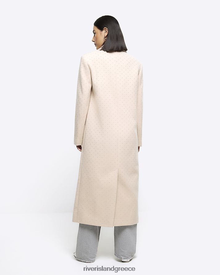 River Island ενδύματα μπεζ γυναίκες παλτό με παραγάδι diamante B6N8X3870