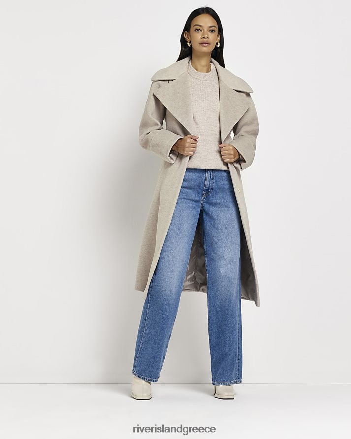 River Island ενδύματα μπεζ γυναίκες παλτό παραγάδι με ζώνη B6N8X4253