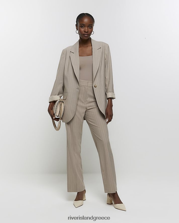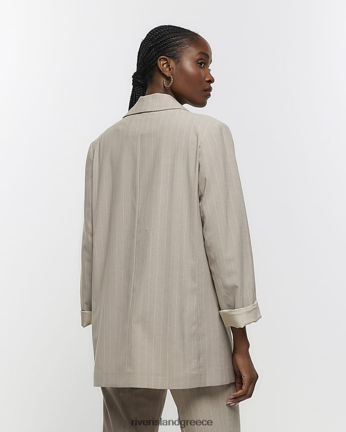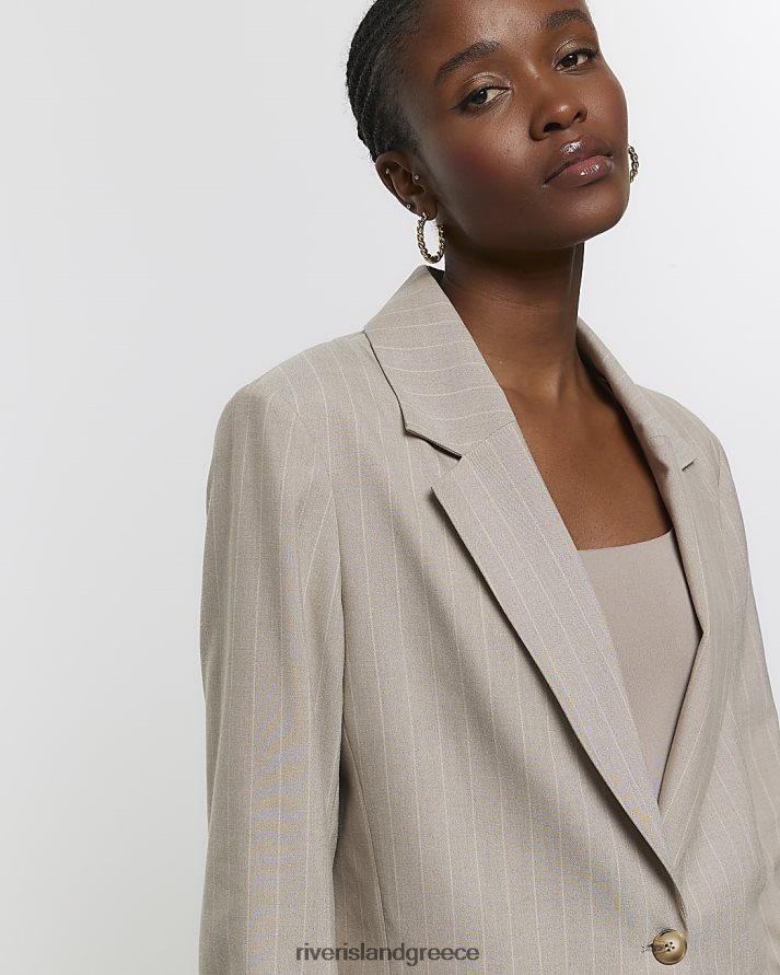 River Island ενδύματα μπεζ γυναίκες ριγέ μπλέιζερ με ρολό μανίκι B6N8X202