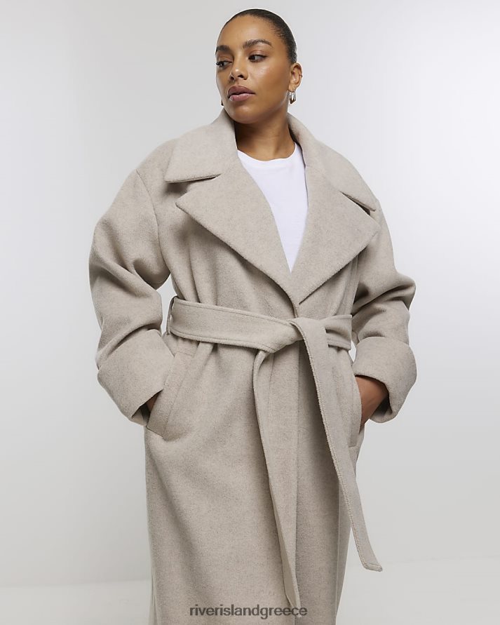 River Island ενδύματα μπεζ γυναίκες συν παλτό με ζώνη B6N8X5088