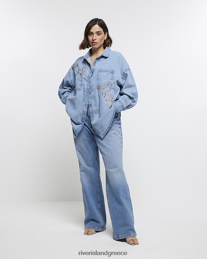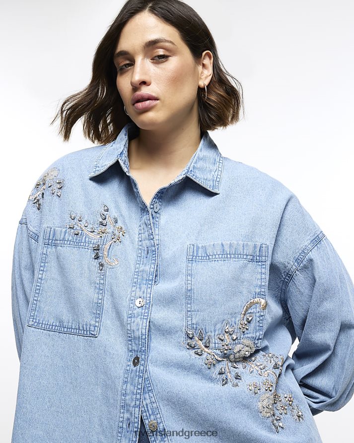 River Island ενδύματα μπλε γυναίκες συν διακοσμημένο μακρυμάνικο πουκάμισο B6N8X5127