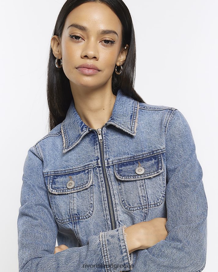 River Island ενδύματα μπλε γυναίκες τζιν μπουφάν με φερμουάρ B6N8X4683