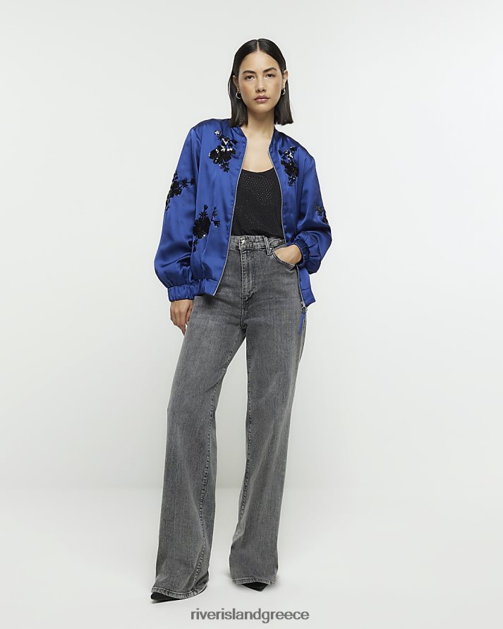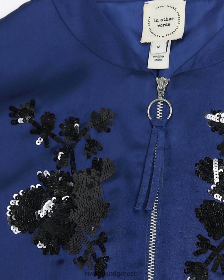 River Island ενδύματα ΠΟΛΕΜΙΚΟ ΝΑΥΤΙΚΟ γυναίκες Σατέν διακοσμημένο bomber jacket B6N8X3972