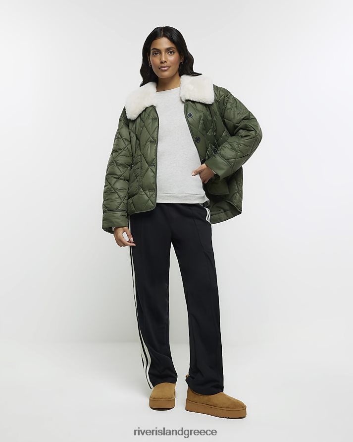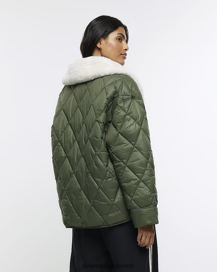River Island ενδύματα χακί γυναίκες μπουφάν με γιακά από ψεύτικη γούνα B6N8X1024