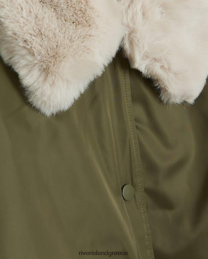 River Island ενδύματα χακί γυναίκες μπουφάν με γιακά από ψεύτικη γούνα B6N8X4183